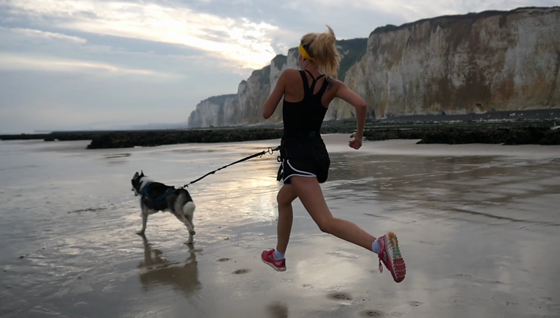 Le principe du canicross est de courir avec son chien attaché à la ceinture. Il court devant et il vous tire.