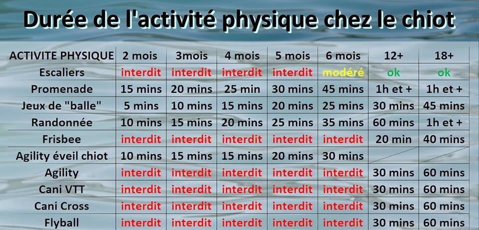 Un petite tableau pour éviter certaines erreurs pendant la croissance de votre chien